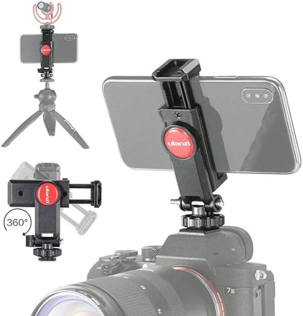ULANZI ST-06 Camera Hot Shoe Phone Holder Flexible Phone Tripod Mount Adapter w Cold Shoe Mount for Microphone LED Light for DJI Ronin SC iPhone Samsung Canon Nikon DSLR Photography