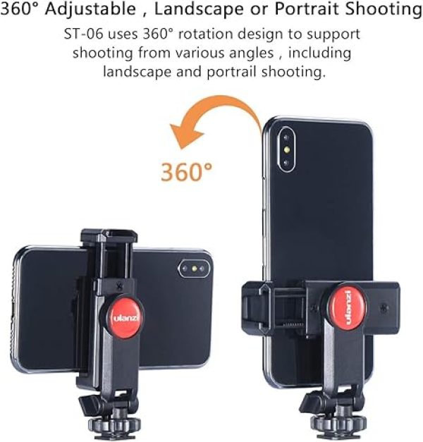 - ๐ผ๐ฃ๐๐ก๐ ๐ผ๐๐๐ช๐จ๐ฉ๐๐๐ก๐, ๐๐ค ๐ฃ๐๐๐ ๐ฝ๐๐ก๐ก๐๐๐๐ — The traditional smartphone tripod mount can not adjust the angle, but ST-06 adjustable angle design allows you to fix on the tripod or camera hot shoe mount and adjust the pitch angle without the ball head.