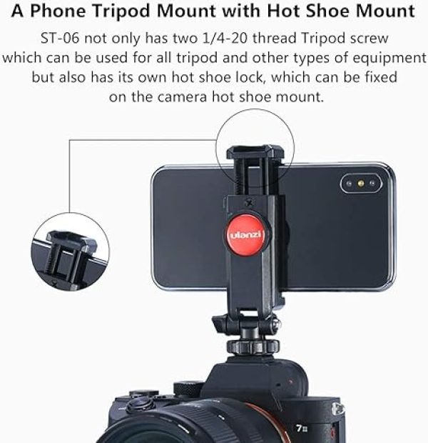 - ๐ผ ๐๐๐ค๐ฃ๐ ๐๐ง๐๐ฅ๐ค๐ ๐๐ค๐ช๐ฃ๐ฉ ๐ฌ๐๐ฉ๐ ๐๐ค๐ฉ ๐๐๐ค๐ ๐๐ค๐ช๐ฃ๐ฉ — ST-06 not only has two 1/4-20 thread Tripod screw which can be used for all tripod and other types of equipment but also has its own hot shoe lock, which can be fixed on the camera hot shoe mount.Compatible with cell phones ๐ธ4.5~6.5inch.๐ธ